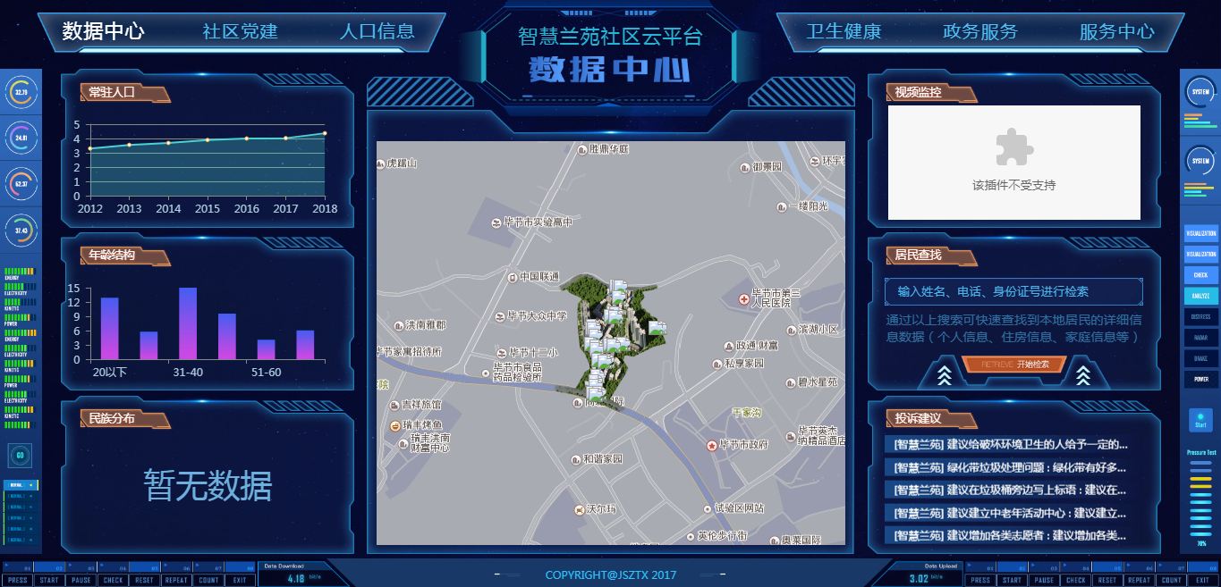 除了社區(qū)服務(wù)之外,社區(qū)的管理也是智慧社區(qū)建設(shè)的關(guān)鍵所在。路通視信為此給蘭苑社區(qū)量身打造了統(tǒng)一的大數(shù)據(jù)管理平臺。通過各類設(shè)備對社區(qū)進(jìn)行感知,進(jìn)行社區(qū)大數(shù)據(jù)的采集,對采集到的數(shù)據(jù)進(jìn)行統(tǒng)一的智能分析,根據(jù)社區(qū)的實(shí)際情況,對數(shù)據(jù)進(jìn)行分類展示。管理員可通過此平臺對社區(qū)情況進(jìn)行實(shí)時(shí)監(jiān)控,各部門聯(lián)動,為社區(qū)居民提供智慧化服務(wù)。