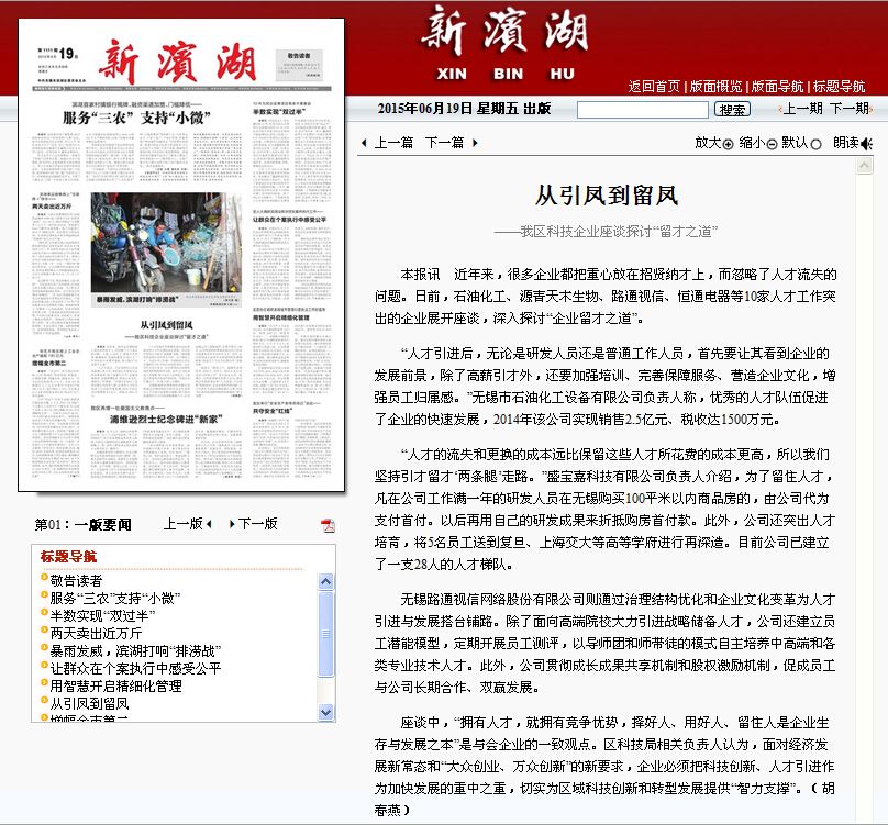 “人才引進后,無論是研發人員還是普通工作人員,首先要讓其看到企業的發展前景,除了高薪引才外,還要加強培訓、完善保障服務、營造企業文化,增強員工歸屬感。”無錫市石油化工設備有限公司負責人稱,優秀的人才隊伍促進了企業的快速發展,2014年該公司實現銷售2.5億元、稅收達1500萬元。