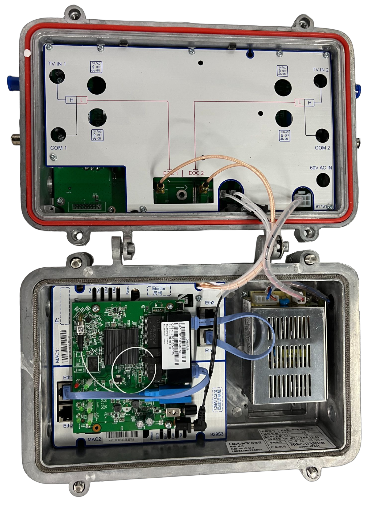 Overview        GDOU2020?series two-in-one is a multimedia local access device that based on IEEE P1901/HomePlug AV、EPON and other technologies.Its main function is to receive IP data signal ,and IP data signal be modulated by OFDM,then the modulated signal and TV signal mixed to coaxial cable for transmission,The multimedia signals are transmitted to users over the existing CATV coaxial network.