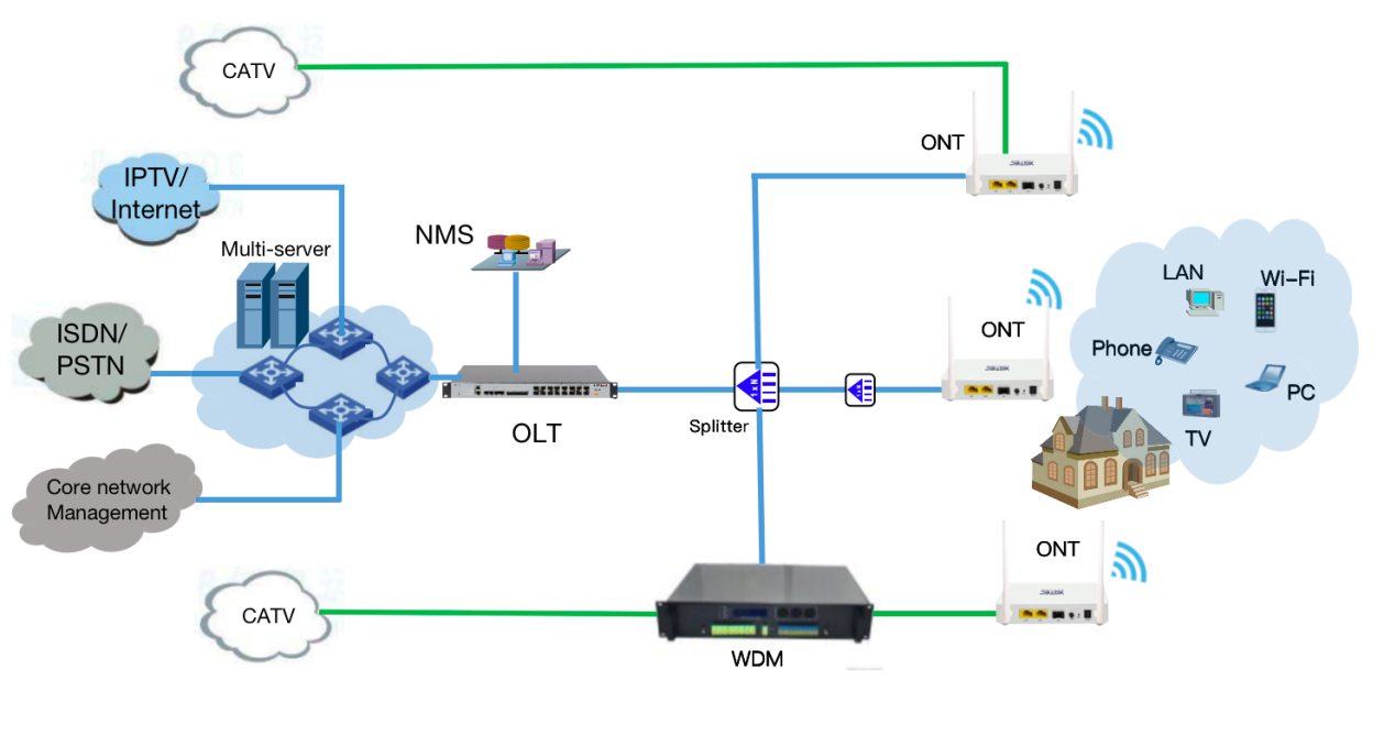 System Capacity: 1:128 split ratio, full configuration supports up to 1024 GPON terminals.