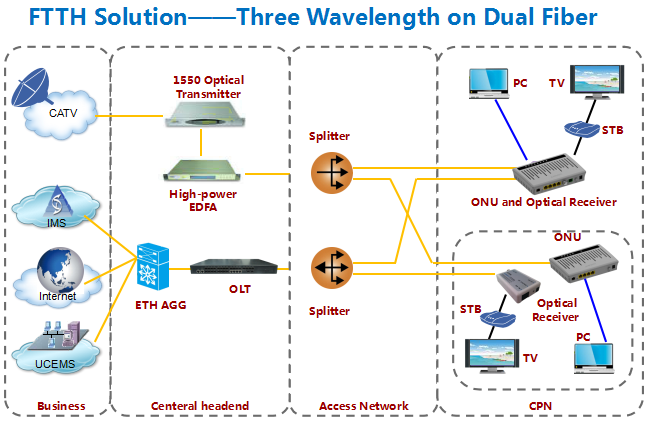 It follows the ITU-T G.984 and IEEE802.3ah. GPON and EPON standard, and it supports remote management, configuration and maintenance through work with OLT of other manufacturers